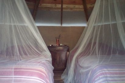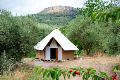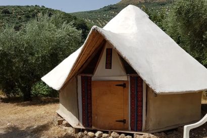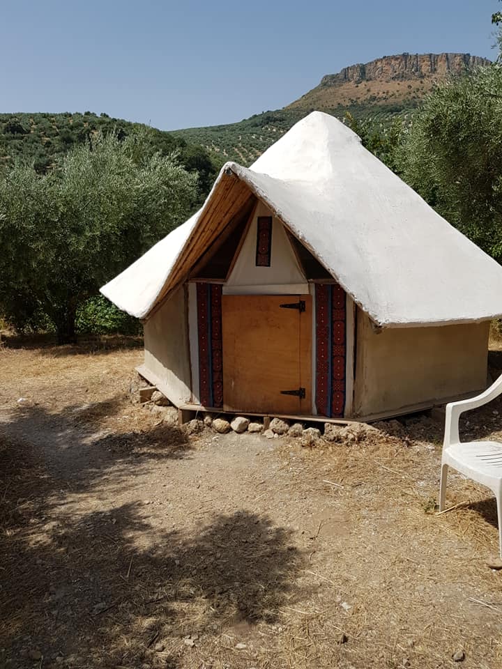 Next to the Mongolian yurts two handcrafted cob roundhouses inspired by African huts offer accomodation for two persons each. Eco-constucted with recycled material and products from the land.With proper beds and bedding all provided you really will be sleeping in magical surroundings—without a tent peg or sleeping bag in sight! Wake up in between cherry trees and olive groves, in this peaceful ecological piece of paradise in an aerea of outstanding beauty, nestled in a secluded valley in the stunning Sierra Sur.